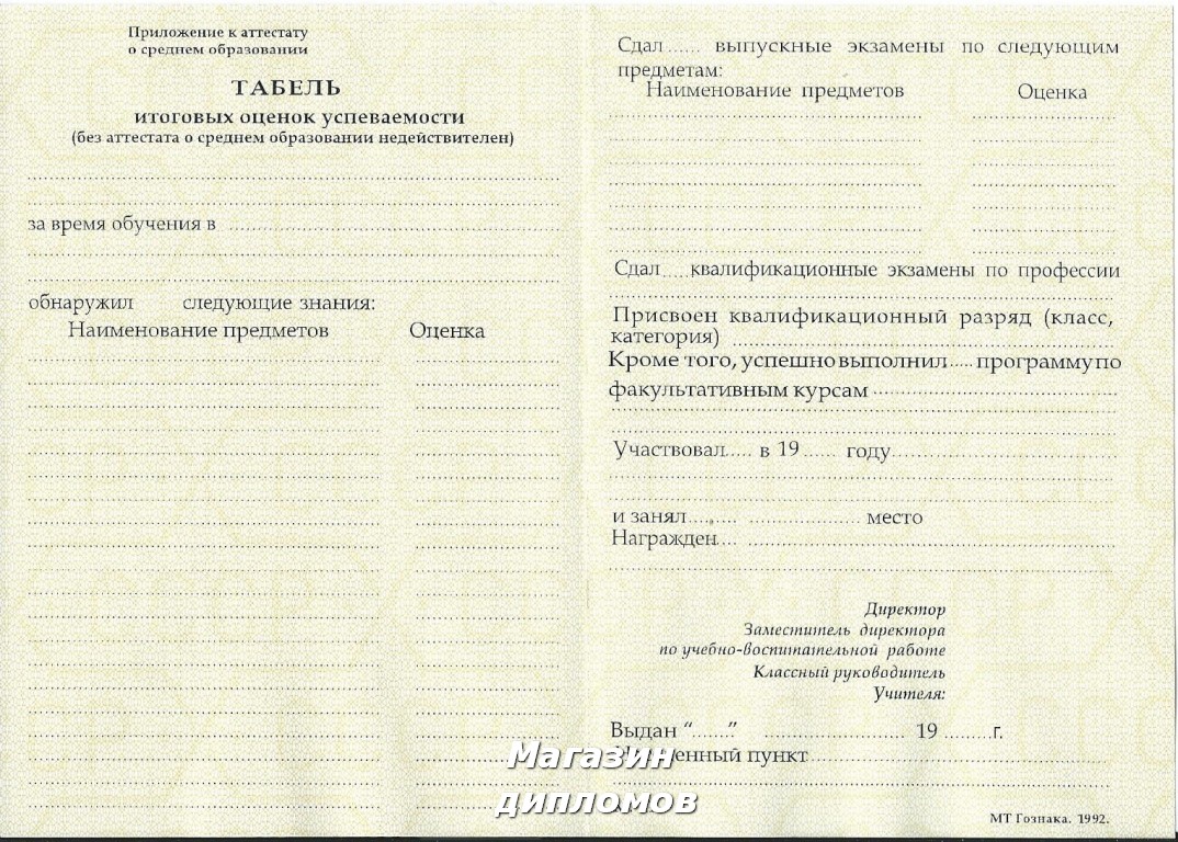 У нас вы сможете купить аттестат за любой год выпуска, что будет заполнен на ваше имя в течение нескольких дней на соответствующем бланке, согласно нормам заполнения того года, за который он выписывается.